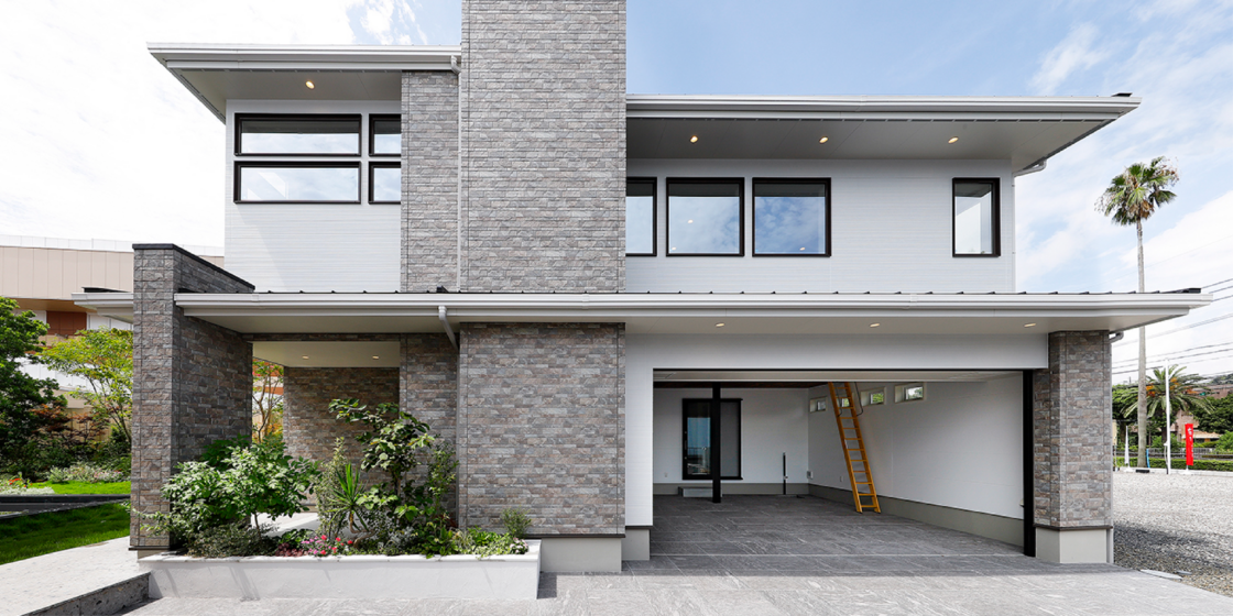 乗用車2台を収納可能なシャッター付きのビルトインガレージハウス。ガレージは玄関やロフト、リビングに直接つながり、使い方が無限に広がる「オトナの遊び場」という表現がぴったりの空間です。愛車を眺められる開放感たっぷりなリビングやカウンター付きの和室、帰宅後すぐに手洗いができる洗面コーナーや、壁面収納を活かした書斎、スムーズな家事を応援する家事時間1/2動線など、ワクワクが止まらない見どころが満載!